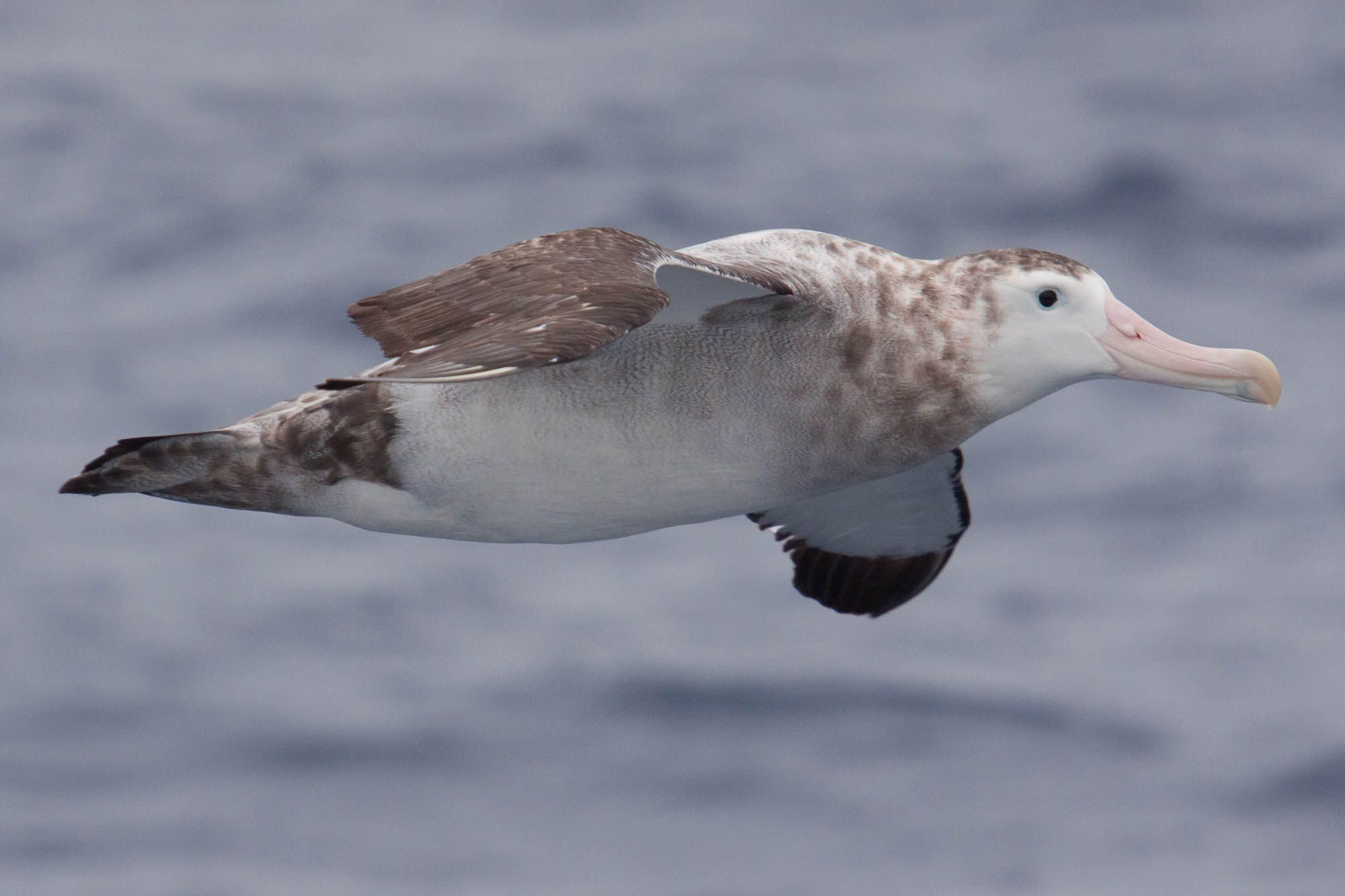 The most common albatross off the United States’ Pacific Coast is the Black-footed Albatross. It’s actually the only species of albatross I’ve ever seen! Black-footed Albatross are also the only dark albatross species to regularly occur in the ABA area. Black-footeds primarily nest on the Hawaiian Islands, but immature birds wander widely across the Northern Pacific, and even foraging adults can cover 1000’s of miles from their nest site! These big, brown seabirds are always a most-wanted target of our California: Central Coast tour each September, and you can almost rely on them like clockwork to make their first appearance at 9:00am sharp during our day-long pelagic trip!