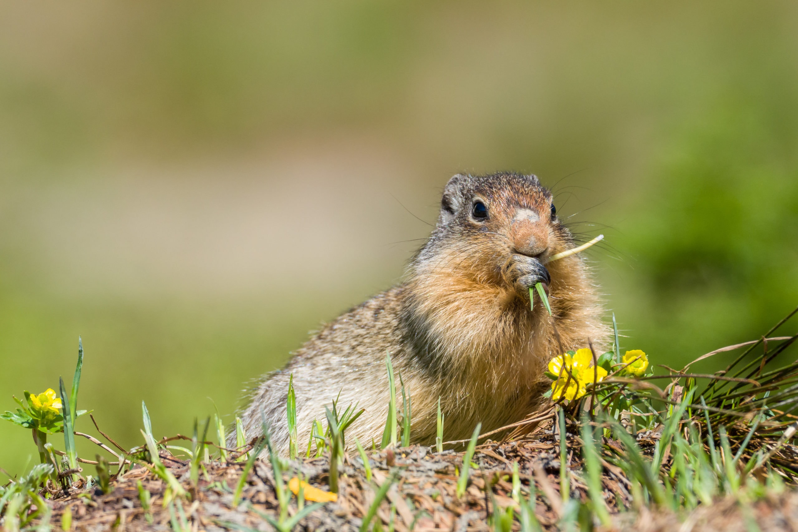 We base our workshop out of Saint Mary, Montana on the east side of the park as this lets us get to some of the best wildlife and landscape photography quickly. We made several visits to the Logan Pass area where scrambling Mountain Goats with young were found each visit! Rocky Mountain Bighorn Sheep were found in several locations with some incredibly close and scenic photography locations. Columbian Ground Squirrels and Hoary Marmots are large rodents that scampered among high elevation wildflowers and provided some fun images. One night we went to a location along Saint Mary Lake for some starry sky images and another location along this lake was incredible while watching a storm over Logan Pass and I managed to capture one of the bolts in an image!