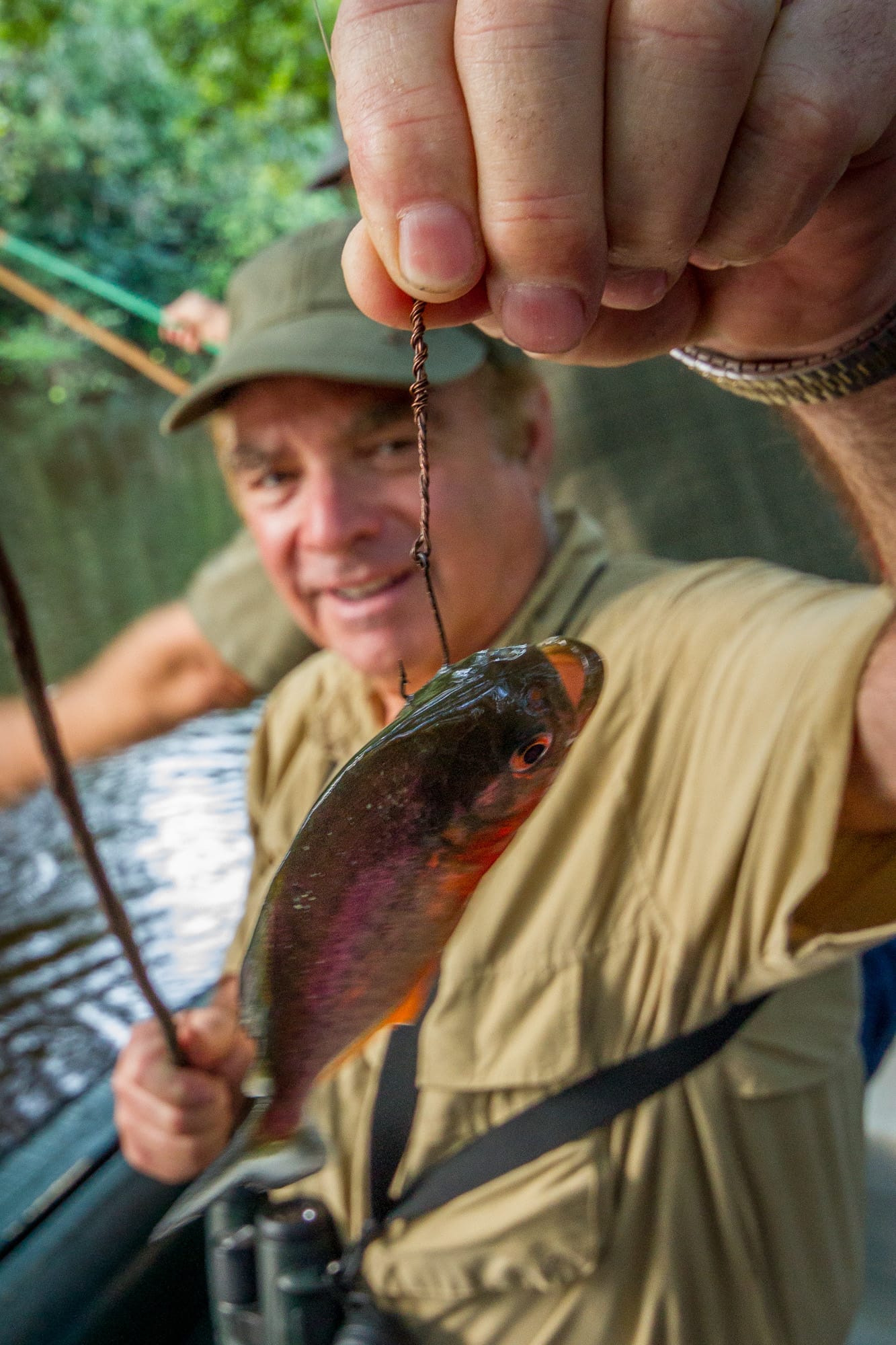 Today we rise early and set out to explore the impressive biodiversity of this unusual ecosystem. We’ll look for a quiet spot to enjoy our picnic breakfast, followed by a trip to explore Choroyacu. We’ll also ride up the Nahuapa River for a little fishing expedition. What’s biting? Piranhas, of course! Reputedly “the most ferocious fish in the world” (to quote Teddy Roosevelt), piranha are a dietary staple for many of the Amazon rain forest’s indigenous people. While fearsome, they’re also esteemed as some of the best eating fish in South America. They have a light, nutty-tasting flesh that lends itself wonderfully to any number of cooking methods, which we’ll discover when we cast our lines today. Piranha aren’t terribly selective about what they eat, making piranha fishing fairly easy. No hand-tied flies or special casting technique required. It’s often enough just to drop a line—usually baited with raw meat or chicken—where they’re swimming.