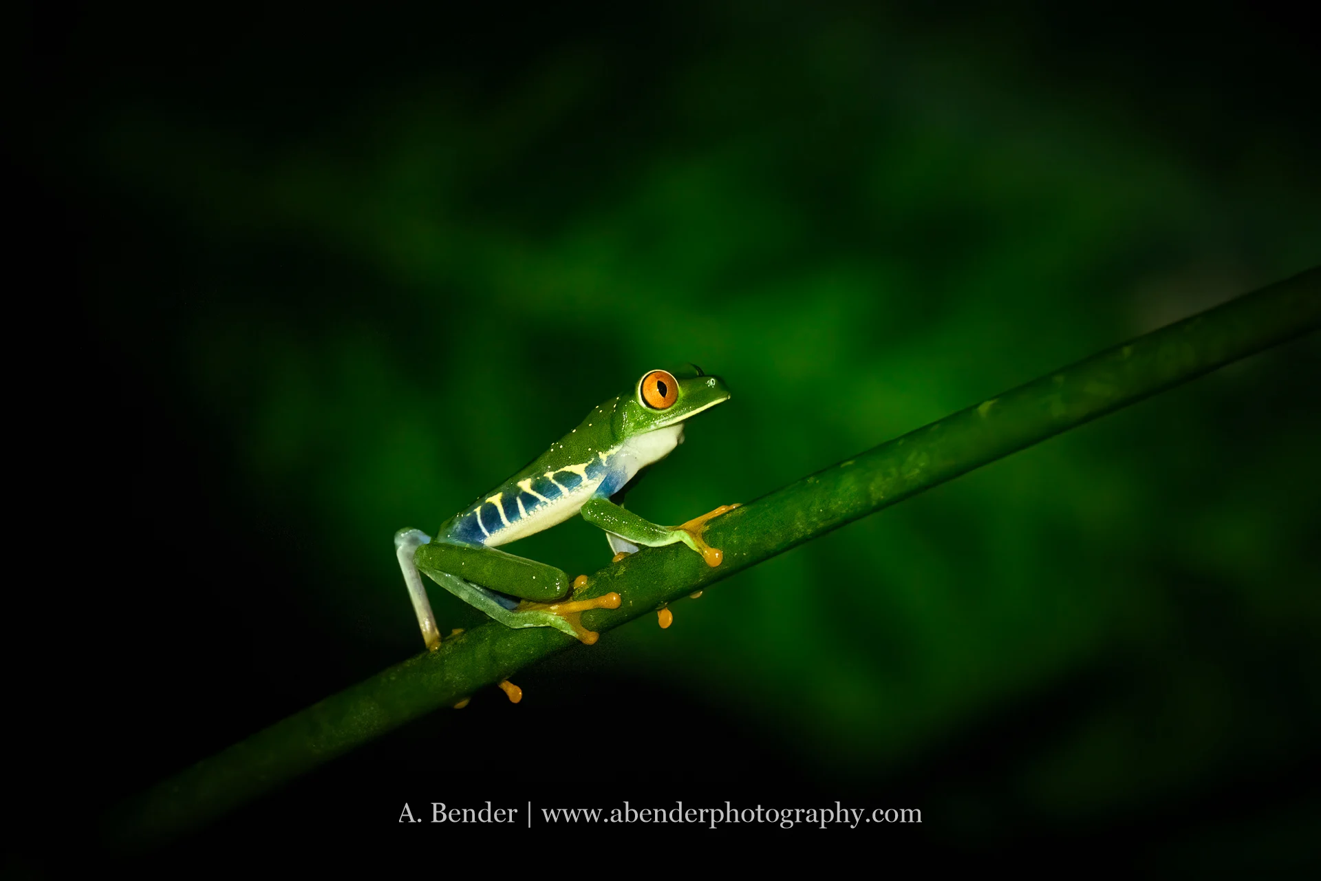Beyond the birds that appear in front and above us, we will have up to six different sessions for macro photography, taking full advantage of the Costa Rican jungle’s plethora of smaller fauna such as red-eyed tree frogs, eyelash vipers, poison dart frogs, leaf-cutter ants, singles bees, and giant forest owl butterflies.