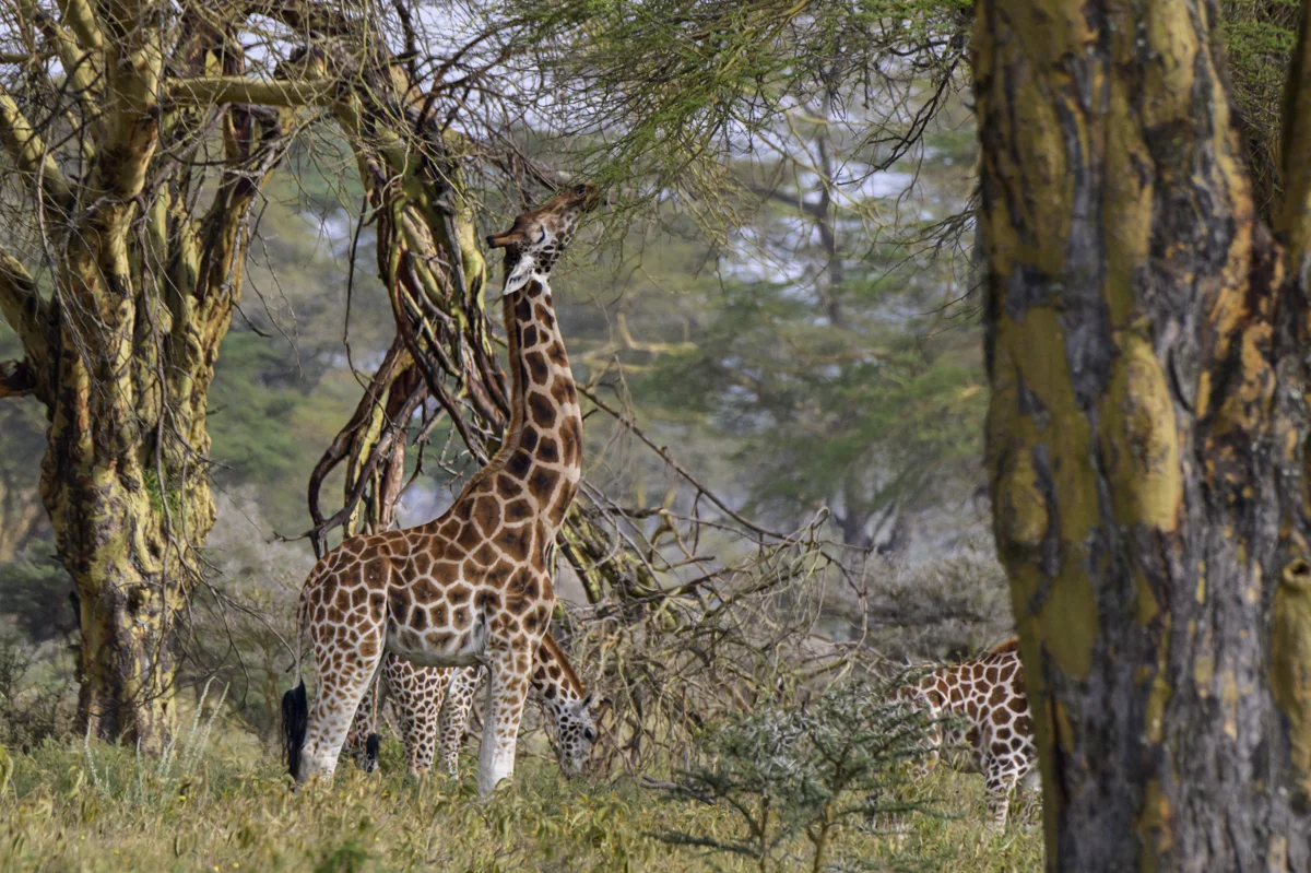Explore the wonders of Lake Nakuru National Park on game drives that promise thrilling wildlife encounters. Witness the iconic flocks of pink flamingos, a variety of bird species, and the park’s renowned rhinos—both the white and endangered black rhinos. Keep your eyes peeled for the rare tree-climbing lions and elusive leopards, as well as buffalo, zebra, and giraffes that roam the savannah.
